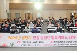 내고향뉴스 김명신 기자 | 안성시는 3월 19일 오후 1시 한경국립대학교 미래융합기술연구센터 국제컨벤션센터에서 “2026년 안성 중장년 행복캠퍼스 상반기 정규과정 입학식을 성황리에 개최했다. 이번 행사는 안성 중장년 행복캠퍼스 교육생 및 유관기관 관계자 포함 약 120여 명이 참석한 가운데 진행됐으며, 현장은 배움과 교류의 열기로 가득했다. 행사는 교육생들이 직접 준비한 공연으로 시작됐다. 배움에 대한 열정과 새로운 도전에 대한 기대감을 표현했다. 특히 공연을 통해 교육생 간 소통이 이루어지며 캠퍼스 공동체로서의 유대감을 다지는 뜻깊은 시간이 됐다. 이번 상반기 정규과정은 입문강연을 포함하여 ▲주민자치 퍼실리테이터 ▲찬품조리 전문가 ▲인생 이모작 아카데미 ▲생성형 AI활용 기초 마스터 등 다양한 프로그램을 포함한 총 10개 과정으로 운영된다. 김용곤 부총장은“행복캠퍼스에서 서로의 경험을 나누고 새로운 인생의 방향을 설계하여 지역사회에 따뜻한 변화와 활력을 전하는 밑거름이 되길 기대한다.”는 환영의 뜻을 전했다. 이창희 평생교육원장(안성 중장년 행복캠퍼스 센터장)은 “중장년 세대가 새로운