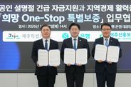 내고향뉴스 조주원 기자 | 제주특별자치도가 설 명절을 앞두고 자금 수요가 늘어나는 소상공인의 경영 부담을 덜기 위해 100억 원 규모의 특별 보증을 마련해 지역경제에 온기를 불어넣는다. 제주도는 27일 제주은행 본점에서 제주은행, 제주신용보증재단과 함께 소상공인 설명절 긴급 자금지원과 지역경제 활력 증진을 위한 ‘희망 원스톱(One-Stop) 특별보증’ 업무협약을 체결했다. 이번 특별보증은 제주은행의 특별출연금 6억 7,000만 원을 재원으로 총 100억 원 규모로 조성되며, 2월 5일부터 재원 소진 시까지 운영된다. 특별보증 대상은 제주지역화폐 ‘탐나는전’ 가맹 소기업·소상공인으로, 대규모 점포와 사행성·유흥업종, 온라인 쇼핑몰 등은 제외된다. 금융 취약계층 소상공인의 부담을 덜기 위해 보증심사 기준을 완화하고, 보증수수료는 기본요율보다 0.3%p 낮은 0.9%를 적용하며, 기존 대출금리 대비 0.9%p 감면된 우대금리를 제공한다. 특히 제주신용보증재단의 ‘보증드림’ 애플리케이션을 활용한 비대면 자동심사 방식을 도입했다. 재단 방문 없이 신청부터 심사까지 한 번에 처리할 수 있어 설