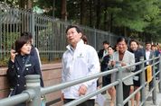 내고향뉴스 이경희 기자 | 이상일 용인특례시장은 2일 오전 수지구 죽전로 대청초등학교 사거리 횡단보도에서 등교시간에 맞춰 진행된 어린이 교통지도 봉사에 참여하고 학교 주변통학로를 둘러보며 일부 시설 개선을 지시했다. 이 시장은 이날 원종태 대청초 교장, 학부모회·녹색어머니회 회원, 학생 등 30여 명이 함께해 교통사고 예방과 안전한 통학로 만들기 캠페인도 벌였다. 이 시장은 학부모들과 함께 통학로 주변을 둘러보며 시설을 점검하면서 ▲대청초 후문 좁은 인도에 풀이 우거져 보행을 방해하는 화단과 파손된 보도블록 정비 ▲인도와 차도의 경계가 없는 구간 볼라드 설치 ▲진흥더블파크 옆 가파른 경사와 급커브 구간 방지턱 추가 설치 ▲학교 주변 일부 보도블럭 교쳬 등을 지시했다. 이 시장은 학교 부근 사거리에서 교통 사고 방지와 보행 안전을 위한 교통지도 활동을 학부모들과 함께 하기도 했다. 이상일 시장은 “학생들이 안전하게 등교할 수 있도록 봉사해 주시는 녹색어머니회 회원님들과 학부모님들께 감사인사를 드린다”며 “시는 앞으로도 학교 주변의 통학 환경 개선읕 위한 노력을 계속 기울이겠다”고 말했다.