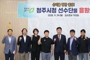 내고향뉴스 채필재 기자 | 이범석 청주시장은 29일 임시청사 직지실에서 제106회 전국체육대회 출전을 앞두고 있는 직장운동경기부 선수단 감독들을 만나 격려했다. 오는 10월 17일부터 23일까지 부산광역시 아시아드주경기장을 포함한 82개 경기장에서 개최되는 전국체육대회에, 청주시 선수단은 총 328명이 27개 종목에 출전한다. 이 중 청주시청 직장운동경기부는 8개 부문*에 50명의 선수가 출전해 청주시의 위상을 드높일 예정이다. 감독들로부터 출전보고를 받은 이범석 시장은 “선수 여러분의 열정과 땀은 이미 청주시의 자랑”이라며 “이번 전국체전에서도 자신감을 갖고 그동안 갈고닦은 실력을 마음껏 펼쳐주시길 바란다. 청주시민들과 함께 여러분을 응원하겠다”고 따뜻한 격려와 응원의 메시지를 전했다.