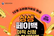 내고향뉴스 정미경 기자 | 12월 소비증가분도 환급 상생페이백 아직 신청 안 하셨다면 - 12월 31일까지 - 최대 3만 원 ※ 상생페이백 9~12월 월별 카드 소비액이 지난해 월평균 소비액보다 늘면 월별 소비액의 20%를 디지털 온누리상품권으로 환급 (12월, 최대 3만 원) *12월에 처음 신청했다면, 9~11월분은 잔여 예산 상황에 따라 지급 여부 결정