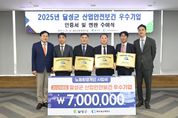 내고향뉴스 임정빈 기자 | 대구 달성군이 안전한 일터 조성에 모범적인 우수 기업을 선정해 인센티브를 지원하는 등 산업재해 예방에 총력을 다하고 있다. 달성군은 대구상공회의소와 공동으로 지난 26일 ‘2025년 달성군 산업안전보건 우수기업 인증서 및 현판 수여식’을 개최하고, 안전한 일터 만들기에 솔선수범한 관내 4개 기업에 인증서와 현판을 전달했다. 올해 우수기업으로 선정된 곳은 ㈜대지메카트로닉스, 미래첨단소재(주), ㈜비엠아이, 일성산업 등 총 4곳이다. 이들 기업에는 인증과 함께, 근로환경 개선을 위한 사업비가 최대 700만 원까지 지원된다. 해당 지원금은 근로시설 및 안전장비 개선 등에 활용될 수 있다. ‘산업안전보건 우수기업 인증사업’은 달성군과 대구상공회의소가 지난 2023년부터 공동 추진해온 사업으로, 산업재해 예방을 위한 민관 협력 모델로 주목받고 있다. 양 기관은 안전하고 건강한 작업환경을 구축하는 기업을 매년 선정해 인증하고, 인센티브를 제공해 오고 있다. 최재훈 달성군수는 “경제가 침체돼 어려운 이때에도 안전한 일터 만들기에 앞장서 온 기업인 여러분의 노고에 감사드린다”며 “앞으로
