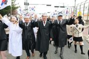 내고향뉴스 김명신 기자 | 충남 계룡시는 1일 두마초등학교에서 열린 ‘두계장터 4·1 독립만세운동 재현행사’를 성황리에 마쳤다고 밝혔다. 계룡문화원 주관으로 열린 이번 행사는 ‘영웅의 함성! 계룡을 깨우다’를 주제로, 1919년 4월 1일 두계장터에 모여 한마음으로 독립을 외쳤던 지역 애국선열들의 숭고한 희생정신을 되새기고 이를 계승하기 위해 마련됐다. 이응우 시장과 김범규 계룡시의회 의장을 비롯한 시의원, 이재운 도의원, 이혜경 논산계룡교육지원청 교육장, 독립유공자 후손, 국가보훈대상자 및 시민 등 1,000여 명이 참석해 행사에 의미를 더했다. 행사는 해군홍보대 공연을 시작으로 국민의례, 독립선언문 낭독, 기념사, 기념공연, 3·1절 노래 제창, 만세삼창, 거리행진 및 플래시몹 퍼포먼스 순으로 진행됐다. 특히, 독립유공자 후손들은 공군의장대의 호위를 받으며 입장해 현장의 분위기를 한층 엄숙하게 이끌었으며, 행사 말미에는 시민들의 감사의 마음을 담은 감사 액자를 전달하는 시간을 마련해 선열들의 희생과 헌신에 대한 존경과 감사의 뜻을 함께 나눴다. 이번 행사는 단순한 기념행사를 넘어 독