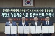 내고향뉴스 이경희 기자 | 홍성군은 29일, 국립식량과학원, KT(케이티), 홍동농협과 함께 저탄소 농업기술 보급 활성화를 위한 4자간 업무협약(MOU)을 체결했다고 밝혔다. 군청 회의실에서 열린 협약식에는 이용록 홍성군수, 주정산 홍동농협 조합장, 국립식량과학원 곽도연 원장, KT 충남·충북고객본부 송영태 본부장 등 19명이 참석했다. 이번 협약에 따라 홍성군은 국립식량과학원이 개발한 저탄소 농업기술의 보급과 현장 지도를 담당하고, KT는 계측 데이터의 안정적 운영을 위한 통신 인프라를 지원하며, 홍동농협은 작목반 교육과 생산 관리 등 현장 적용에 중점을 두게 된다. 현재 저탄소 농산물 인증을 위해 필요한 ‘논물 관리’의 증빙은 농민이 수위를 직접 촬영해 업로드해야 해 고령농가의 참여에 어려움이 있었고, 증빙의 정확성도 낮다는 지적이 있었다. 이에 홍성군은 지난 6월 국립식량과학원·홍동농협과 협력해 홍동면 17개 대표 필지에 논물 계측기를 설치하고 현장 실증을 추진해왔으며, 이번 협약은 이러한 노력을 기반으로 저탄소 농업기술의 지속적 확산을 위해 마련됐다. 이용록 홍성군수는 “이번 협