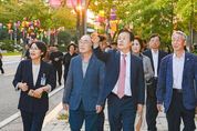 내고향뉴스 임정빈 기자 | 진주시는 10월 축제와 진주실크박물관 개관에 따른 분위기 조성을 위해 지난 29일 ‘진주실크로드’ 명예도로에 실크등과 공예등 설치를 완료하고 현장점검을 실시했다. 조규일 진주시장과 진주시의회 경제복지위원회 소속 의원, 실크융복합전문농공단지 입주기업체 회원, 문산읍 주민 등 50여 명이 현장을 방문해 설치된 실크등을 점검하고, 진주실크의 아름다움과 정체성을 함께 공유했다. 이번 실크등 전시는 11월까지 시범적으로 진행되며, 설치 구간은 문산읍 ‘실크융복합전문농공단지’ 내 진주실크박물관에서 경남직물공업협동조합까지 양방향 도로를 따라 총 400m이다. 이 구간에 다양한 실크 조각보 문양과 전통패턴을 활용한 진주 실크등 1700여 개를 설치해 ‘실크의 도시 진주’를 상징하는 문화예술 공간으로 탈바꿈시켰다. ‘진주 실크등’은 단순한 조형물을 넘어 진주실크의 유구한 역사와 미적 감각을 시각적으로 구현한 것으로, ‘진주실크로드’ 명예도로가 지역주민과 방문객 모두가 함께 즐길 수 있는 야간 문화공간이 될 것으로 기대를 모으고 있다. 진주를 대표하는 전시 콘텐츠로 각광받고 있