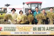 내고향뉴스 채필재 기자 | 안성시농업기술센터는 9월 29일, 안성시 지역특화 벼 품종인 ‘수찬미’의 벼 베기 행사를 성황리에 개최했다. 이번 행사는 2025년부터 본격 보급된 ‘수찬미’를 널리 알리고, 기존 외래품종 ‘추청’을 대체할 대안으로 홍보하기 위해 마련됐다. 이번 행사에는 김보라 안성시장을 비롯해 안성시 및 경기도농업기술원 관계 공무원, 농협중앙회 안성시지부장, 지역농협 조합장 및 안성마춤농협 관계관, 안성시 농촌지도자 및 쌀연구회 회원, 벼 재배 농업인 등이 참석했다. 이날 김보라 시장은 직접 콤바인에 탑승해 수확 시연에 참여하며 농업인들의 노고를 격려하고 수확의 기쁨을 함께 나눴다. ‘수찬미’는 경기도농업기술원이 개발한 중생종 중간찰 벼로, 보람찰과 밀키퀸을 교배해 만들어졌다. 밥맛과 식감이 뛰어나고 수발아율이 낮아 기후변화에 대한 적응력도 높다. 특히 지난 55년간 안성지역 대표 품종으로 널리 재배되고 있는 추청벼가 2027년부터 보급종 공급이 중단될 예정이어서, ‘수찬미’가 안성시의 대체 품종으로 주목받고 있다. 김보라 시장은 “수찬미는 올해부터 500ha로 본격 도입되어 내년에는 재배면적을 1