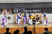내고향뉴스 임정빈 기자 | 거창군은 지난 1일 거창군종합사회복지센터 대회의실에서 거창풍물놀이패의 제24회 정기공연 ‘북돋음, 신명으로 치닫다!’가 구인모 거창군수, 군의원 등 100여 명이 참석한 가운데 성황리에 열렸다고 밝혔다. 이번 정기공연은 거창풍물놀이패와 함께해 온 단원들이 한 해 동안 갈고닦은 기량을 선보이는 자리로, 관객과 출연자가 함께 어우러져 하나 되는 문화소통의 장으로 마련됐다. 공연은 열림굿 창작타악을 시작으로 풍물장단과 소리굿 ‘비나리’, 이매방류 승무와 소고춤, 영남사물, 삼도설장고, 삼도사물 등 전통예술 무대로 꾸며졌으며, 이어 현대적 감각을 더한 타악 퍼포먼스와 무대와 객석이 함께 어우러지는 대동난장이 펼쳐져 관객들의 큰 호응을 얻었다. 이날은 거창풍물놀이패를 비롯해 △너나들이풍물패 △타악그룹 나래울 △전통예술공연단 타혼 △오름무용단 △대파람풍물패(거창대성고 졸업생)가 함께 참여했으며, 전통문화에 익숙하지 않은 군민들도 쉽게 즐길 수 있는 다채로운 볼거리로 가을밤의 흥과 멋이 살아난 신명나는 무대를 선보였다. 하용현 거창풍물놀이패 대표는 “너나없이 어우러지는 푸진 판, 지역
