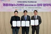 내고향뉴스 채승병 기자 | 영종구 출범 원년을 맞아 올해 새롭게 개관한 ‘영종하늘누리센터’의 안정적·체계적 운영을 위해 인천시 중구가 인천시 교육청, 운서중학교와 손을 맞잡았다. 김정헌 인천 중구청장과 도성훈 인천시 교육감, 김성오 운서중학교장은 10일 오후 영종하늘누리센터 하늘배움터에서 이러한 내용의 ‘인천운서중 학교복합시설(영종하늘누리센터)의 운영과 관리에 관한 업무 실시협약’에 서명했다. ‘영종하늘누리센터’는 인천 중구가 운서중학교 부지 내 일부를 무상으로 제공받아 하늘초롱길 69 일원에 지하 1층, 지상 4층 연면적 5,635㎡ 규모로 건립한 ‘학교복합시설’이다. 지난 2024년 6월 첫 삽을 떠 올해 1월 건립 공사를 모두 마쳤으며, 3월 준공식을 개최한 후 현재는 운영 본격화에 행정력을 집중하고 있다. 특히 다함께돌봄센터 7호점(거점형), 육아종합지원센터, 가족센터, 영종하늘누리 작은도서관이 지난 2월부터 입주해 다양한 복지·문화 서비스를 구민들에게 제공하고 있다. 이번 협약은 지난 2021년 영종하늘누리센터 건립을 위해 체결한 기본 업무협약의 내용을 한층 더 구체화함으로써