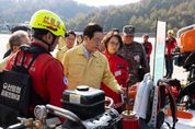내고향뉴스 김익성 기자 | 이재명 대통령은 6일 오후 강원도를 방문해 관·군의 산불 진화 장비와 대응체계를 점검한 뒤, 동해안 산불 위험 지역을 시찰했다. 이 대통령은 취임 직후부터 관계기관에 가용 가능한 자원을 총동원하는 등 강력한 산불 진압 초기 대응체계를 마련하라고 거듭 지시해 왔다. 이번 방문은 이러한 대통령 지시사항의 이행 상황을 직접 점검하기 위해 실시된 것이다. 이 대통령은 먼저 강원 원주시에 위치한 산림청 산림항공본부를 찾아 산림청과 군(軍)의 산불 진화 헬기, 드론, 차량 등 핵심 장비를 점검했다. 현장을 둘러본 이 대통령은 "산불이 발생했을 때 초기에 신속하게 대응할 수 있도록 현장의 1차 책임을 명확히 하라"고 지시했다. 또한 "산불 대응 관련 예산과 사업은 국민이 납득할 수 있도록 투명하고 효율적으로 운영하라"고 말하면서도, "산불 대응에 있어서는 '아깝다'고 생각하지 말고 초기부터 전력으로 대응하라"고 당부했다. 이어 이 대통령은 산림청과 국방부의 ‘산불 진화 합동훈련’을 참관했다. 훈련은 헬기 레펠을 이용한 공중 진화, 드론을 활용한 정밀 진화, 헬기 물 투하 등의 순서로
