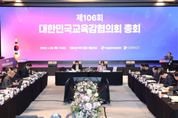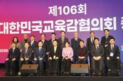 내고향뉴스 채필재 기자 | 대한민국교육감협의회(회장 강은희 대구광역시교육감)는 1월 29일, 경기도 성남시 더블트리바이힐튼서울판교호텔에서 제106회 총회를 개최했다. 이번 총회에서는 전국 시도교육감 및 교육청 관계자, 협의회 사무국 관계자 약 200명이 참석하여 '사립학교의 ‘공직자 이해충돌방지법’ 적용을 위한 법령 개정 건의' 등 5개 안건을 심의·의결했고, '행정통합 추진에 따른 경과 및 쟁점'에 대해 교육의제로 토의했다. 이날 심의 안건은 ▲사립학교의 ‘공직자 이해충돌방지법’ 적용을 위한 법령 개정 건의, ▲외부강의 등 요청 표준서식 마련 요구, ▲‘보호자 협조·동의 관련’ 기초학력 보장법 및 동법 시행령 개정 요청, ▲교육활동 침해 학생의 학적변동 제한을 위한 법률 개정 건의, ▲학습지원 소프트웨어 관련 초·중등교육법 개정 제안으로 모두 5개의 안건을 심의·의결했고, 지난해 12월 11일 실무협의회를 통해 전국 17개 시도교육청의 전원 합의 과정을 거쳤다. 다음으로 2개 교육청에서 우수사례를 발표했는데, ▲(경기) 시·공간 경계를 넘어 세계를 잇는 한국어교육 온라인 경기한국어랭귀지스쿨(KLS 3섹터) 구