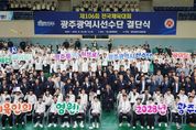 내고향뉴스 채필재 기자 | 광주광역시체육회(회장 전갑수)가 26일 오후 2시 빛고을체육관에서 ‘제106회 전국체육대회 광주선수단 결단식’을 열어 대회 필승을 위한 각오를 다졌다고 밝혔다. 이날 행사에는 전갑수 체육회장, 김영문 광주시 문화경제부시장, 서용규 광주시의회 부의장, 이정선 광주시교육감을 비롯한 종목단체 회장, 임원, 육성학교장 등 관계자 400여 명이 참석해 광주시 대표선수단의 선전을 기원하며 격려했다. 행사는 사전공연, 전국체전 참가계획 보고, 대표선수 훈련영상 시청, 선수단기 수여, 선수대표 선서, 응원 메시지 및 격려금 전달 등의 순으로 진행됐다. 이날 선수 선서에는 육상 이재성(광주시청)과 양궁 오예진(광주여대 4년)이 함께 나서 선수단을 대표해 필승 결의를 다졌다. 광주선수단은 이번 부산 전국체전에서 육상 남자 400m 계주(광주시청) 5연패에 도전한다. 또 지난해 제105회 체전에서 대회 4관왕에 오른 육상 고승환과 한국 근대5종 간판 전웅태(이상 광주시청)가 국가대표로서의 기량을 선보인다. 역도 국가대표 손현호(광주시청)와 여고부 농구 강호 수피아여고 등도 출전해 시‧도 종합득점 30,0
