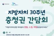 내고향뉴스 김익성 기자 | 행정안전부는 10월 28일 충청북도 청주시립미술관에서 민선 지방자치 30주년 충청권 간담회를 개최한다고 밝혔다. 이번 간담회는 지난 8월과 9월에 열린 강원권·경상권·수도권 간담회에 이어 열리는 네 번째 행사로, 충청권 주민과 함께 지방자치 30주년의 성과를 돌아보고 미래 방향을 논의하는 자리이다. 충청권 간담회는 청년센터, 청년정책협의체 등 충청권에서 활동하는 청년을 포함한 주민 50여 명이 참석해 미래세대의 목소리가 중심이 되는 지방자치 소통의 장이 될 것으로 기대된다. 간담회에서는 ▲주민 참여 활성화, ▲주민 체감형 행정서비스, ▲자치분권 실현, ▲지방의회의 역할 등을 주제로, 청년들이 지방자치 현장에서 직접 경험한 사례를 공유하고, 지역 현안 등에 대한 다양한 의견을 나눌 예정이다. 아울러 현장에서는 지방자치 퀴즈, ‘다음 30년, 내가 바라는 지방자치는 (네모)다’ 등 이벤트와 모바일 실시간 의견 수렴 방식을 통해 참여자 누구나 자유롭게 의견을 제시할 수 있다. 행정안전부, 충청북도는 간담회를 통해 청취한 의견을 바탕으로 민선 지방자치 30년의 성