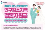 내고향뉴스 김익성 기자 | 충북도는 도내 인구감소지역 청년 신혼부부의 안정적인 지역 정착을 지원하기 위해 추진 중인 ‘인구감소지역 결혼지원금’ 사업을 오는 4월 1일부터 전격 개편 시행한다. 이번 사업은 도내 인구감소지역인 제천시, 보은군, 영동군, 괴산군, 단양군에 거주하는 초혼 신혼부부 480쌍에게 부부당 100만 원을 지원하는 사업이다. 결혼 초기 경제적 부담을 완화하고 청년세대의 지역 정착을 유도하기 위해 2025년부터 시행됐다. 실제로 2025년 도내 인구감소지역 혼인 건수는 1,028건으로 전년 대비 17.8% 증가하며 지역에 반가운 온기를 불어넣었다. 이는 충북 전체 증가율(7.8%)을 두 배 이상 뛰어넘는 수치로, 충북도는 이러한 흐름을 이어가고 수혜 사각지대를 해소하기 위해 이번 제도 개편을 추진한다. 이번 개편의 핵심은 지원대상 확대다. 기존 ‘당해연도 혼인신고자’로 한정했던 기준을 ‘혼인신고일로부터 1년 이내’로 완화했다. 특히, 2025년에 혼인신고를 마친 부부에게도 유예기간을 적용해, 오는 12월 11일까지 신청이 가능하도록 문턱을 낮췄다. 또한, 부부 중 한 명이 혼인·연