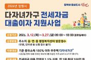내고향뉴스 김익성 기자 | 창원특례시는 세자녀 이상 다자녀가구의 전세자금 대출에 대한 이자 부담을 줄이고 안정적인 주거환경을 조성하기 위해 “창원시 다자녀가구 전세자금 대출이자 지원사업”을 시행한다고 밝혔다. 이 사업은 다자녀 가구의 주거비 부담을 완화하고 재정적 지원을 통해 출산율 제고에 기여하고자 시가 추진하는 사업으로, 3월 12일부터 27일까지 읍‧면‧동 행정복지센터에서 접수 받는다. 지원대상은 ▲기준 중위소득 180% 이하 무주택 다자녀가구로서 ▲18세 이하(2007.3.3. 이후 출생)의 자녀가 3명 이상이며 ▲금융기관으로부터 주택 전세자금 대출을 받고 ▲공고일 현재 부모·자녀 모두 창원시에 주소를 두고 있는 가구이며, 이 모든 조건을 충족 시 자격여부 확인을 거쳐 전세자금 대출잔액의 1.5% 이내 최대 100만 원까지 연 1회 지원된다. 다만, 기초생활수급 가구, 공공임대주택 거주 가구, 1촌 직계혈족 및 그 배우자와 임대차계약을 체결한 가구, 2026년 창원시 신혼부부 전세자금 대출이자 지원사업 등 유사 사업으로 이자 지원을 받은 가구는 제외되며, 자세한 사항은 창원시 홈페이지 고시 공고 게시