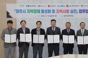 내고향뉴스 임정빈 기자 | 청주시는 13일 임시청사 직지실에서 청주상공회의소 및 지역 내 주요 기업과 청주사랑상품권(청주페이) 활성화를 위한 업무협약을 체결했다. 이날 협약식에는 이범석 청주시장과 차태환 청주상공회의소 회장, 박호현 SK하이닉스㈜ 부사장, 김영대 ㈜LG화학 청주공장 대외협력팀장, 최상운 에코프로 부사장, 김용술 ㈜LG에너지솔루션 오창주재임원, 이규득 ㈜심텍 상무가 참여했다. 협약은 지역경제 활성화와 민생경제 회복을 위해 소상공인과의 상생 협력을 강화하고, 지역 내 소비를 촉진하기 위해 마련됐다. 협약의 주요 내용은 △직원들에게 지급하는 선택적 복지제도(복지포인트, 포상금 등) 중 일부를 청주페이로 지급하는 방안 마련 △설·추석 등 명절 기간 전통시장 장보기 행사 추진 △청주페이 사용 적극 홍보 등이다. 특히, 지난 9일 복대가경시장에서 열린 설맞이 전통시장 장보기 행사에는 이번 협약에 참여한 기업 중 에코프로와 ㈜심텍 임원들이 이범석 청주시장과 함께 참여해 지역 상생의 의미를 더했다. 이 시장은 “지역경제 활성화를 위한 이번 협약에 적극 동참해준 기업들의 지역사랑 실천