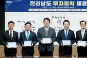 내고향뉴스 임정빈 기자 | 전라남도는 26일 동부청사에서 여수그린에너지㈜, ㈜한화 글로벌부문, ㈜LX MMA 등과 1조 2천441억 원, 고용 창출 147명 규모의 투자협약을 했다. 협약식에는 김영록 전남도지사와 한상훈 여수그린에너지㈜ 대표이사, 김태욱 ㈜한화 글로벌부문 머티어리얼(Material)사업부장, 김창호 ㈜엘엑스 엠엠에이(LX MMA) 공장장, 정기명 여수시장 등이 참석했다. 전남도는 이번 투자가 여수국가산단의 범용 석유화학 소재 중심 산업구조를 친환경·바이오·고부가가치 산업으로 전환하는 첫걸음이 될 것으로 기대하고 있다. 또한 대규모 설비 투자에 따라 건설·물류·서비스업 등으로 고용이 확대돼 지역 고용 안정에도 도움이 될 전망이다. 투자협약에 따라 여수그린에너지는 1조 원을 투자해 여수산단 입주 기업에 전력·스팀을 안정적으로 공급하기 위한 LNG 복합화력발전소를 건설한다. 스팀과 전력을 동시에 생산해 에너지 이용 효율을 높이고, 석탄화력발전 대체를 통한 친환경에너지 정책에도 기여하겠다는 계획이다. 한화 글로벌부문은 바이오의약품 제조 공정에 필수적으로 사용되는 완충용액의 핵심 원료인 고순