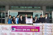 내고향뉴스 임정빈 기자 | 사회복지법인 더 굿 세이브(대표이사 박영태)는 추석 명절을 앞두고 25일 밀양시청을 방문해 1,200만원 상당의 재해구호물품 800세트와 500만원 상당의 김 80세트를 기탁했다. 기탁된 물품은 지역 내 취약계층 노인, 장애인·아동 세대 등 880세대에 전달될 예정이다. 더 굿 세이브는 2008년 설립 이후 지역 사회 복지 발전에 꾸준히 기여해왔다. 특히 매년 어린이날, 크리스마스, 추석·설 명절에 맞춰 선물을 지원하는 등 소외된 이웃을 위한 나눔 활동을 활발히 펼치고 있다. 박영태 대표이사는 “모두가 따뜻한 명절을 보내길 바라는 마음으로 작은 정성을 준비했다”라며 “이 나눔이 모여 더 따뜻한 세상을 만드는 데 보탬이 됐으면 좋겠다”라고 말했다. 안병구 시장은 “어려운 이웃을 위해 지속해서 나눔을 실천해 주시는 더 굿 세이브에 깊이 감사드린다”라며 “덕분에 밀양시민 모두가 더욱 풍요롭고 행복한 추석을 보낼 수 있을 것 같다”라고 감사의 인사를 전했다.