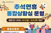 내고향뉴스 이경희 기자 | 제주특별자치도는 2일 오영훈 지사 주재로 ‘2025년 추석 연휴 종합대책 보고회’를 열고 ‘모두에게 닿는 민생회복, 모두가 행복한 추석명절’을 슬로건으로 분야별 세부 추진계획을 점검했다. 이날 보고회에는 행정부지사, 정무부지사를 비롯해 안전건강실장, 특별자치행정국장, 행정시 부시장 등 30여 명이 참석했다. 제주도는 3일부터 9일까지 특별자치행정국장을 총괄로, 총 7개반 2,157명을 투입해 종합상황실을 운영한다. 도 7개반 555명, 제주시 7개반 875명, 서귀포시 9개반 727명이 참여하며, 하루 평균 308명이 현장에서 비상근무를 선다. 제주 120 만덕콜센터와 당직 근무자가 도민과 관광객 불편신고를 접수한다. 9월 23일 수립해 추진 중인 추석연휴 종합대책은 ▲민생경제 안정 ▲도민안전 확보 ▲교통·관광 편의 ▲도민불편 해소 ▲나눔실천 및 도민화합 등 5개 분야로 구성됐다. 물가안정 및 소비촉진을 위해 물가대책 종합상황실을 꾸려 추석 성수품 가격을 특별 관리하고 있다. 장바구니 물가조사를 주 1회에서 주 2회로 늘리고, ‘탐나는전’ 인센티브 13% 적립
