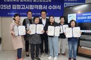 내고향뉴스 라정운 기자 | 울진희망학교는 지난 9월 24일 울진종합터미널 2층 교실에서‘2025년 검정고시 합격증서 수여식’을 가졌다. 이번 수여식에는 희망학교 출신 후원자들과 합격생, 자원봉사 교사 등 40여 명이 참석한 가운데 진행됐다. 손병복 울진군수를 비롯해 희망학교 관계자와 여러 내빈이 참석해 합격자들을 축하했다. 수여식은 합격증서 전달, 격려사, 감사인사 순으로 진행되어 늦깎이 배움의 결실을 맺은 학생들에게 큰 격려와 용기를 주었다. 올해 검정고시에는 총 8명(중등2명, 고등6명)이 합격했으며, 이 중 최고령 합격자는 1948년생으로 참석자들에게 특별한 울림을 전했다. 합격생들은 배움의 기회를 제공하고 든든히 곁을 지켜준 학교 관계자와 자원봉사 교사들에게 깊은 감사를 전하며, 다양한 합격 소감을 나누어 큰 박수를 받았다. 한편, 2018년부터 죽변에서 시작된 울진희망학교는 학력 취득에 어려움을 겪는 주민들을 위해 초·중·고등 과정의 검정고시 교육 및 디지털교육, 성인영어, 한글문해 등 다양한 평생교육 프로그램을 꾸준히 제공하고 있다. 손병복 울진군수