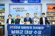 내고향뉴스 임정빈 기자 | 남해군이 ‘2025 대한민국 자치발전 대상’ 기초자치단체 부문에 선정되는 영예를 안았다. 대한민국 자치발전 대상은 한국자치발전연구원이 주최하고 한국지방자치학회, 한국지역개발학회가 후원하는 상으로, 지방자치 발전과 지역 혁신에 기여한 국회의원, 지방자치단체, 지방의회 의원, 공무원, 민간 등을 격려하기 위해 매년 시행되고 있다. 남해군은 민생안정 지원금 지원 조례 제정, 빈집 정비 및 활용 조례 개정, 기업·투자유치 조례 시행규칙 개정 등 현안 해결을 위한 제도 개선을 선도적으로 추진해 지역 여건에 맞는 법적·제도적 기반을 마련해 왔다. 또한 보물섬FC 클럽하우스 조성, ‘국민고향 남해 방문의 해’ 추진 등 지역 특성을 살린 독창적인 정책과 더불어 교육자치, 주민자치 캠페인, 군민 맞춤형 복지정책 등을 통해 다양한 분야에서 모범적인 성과를 거둔 점을 높이 평가받았다. 장충남 남해군수는 “이번 수상은 지방자치 30주년을 맞아 더욱 뜻깊은 결과”라며 “군민과 함께 추진해 온 정책이 전국적으로 인정받은 만큼, 앞으로도 군민이 체감할 수 있는 혁신 행정을 통해 지방자치를 실현해나가