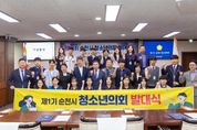 내고향뉴스 채필재 기자 | 순천시의회는 9월 12일 제1기 순천시 청소년의회 발대식과 제1차 본회의를 성황리에 개최했다. 이날 행사에는 청소년의원 21명을 비롯해 순천시의회 의장단, 순천교육지원청 허동균 교육장, 학부모 등 약 50명이 참석했다. 강형구 순천시의회 의장과 허동균 순천교육지원청 교육장이 청소년 의원들에게 위촉장, 의원증, 의원 배지를 수여하고, 제1기 순천시 청소년의회의 공식적인 출범을 알렸다. 발대식에 이어 열린 제1차 본회의에서는 청소년의회 의장단 선거가 진행됐으며, ▲정지민(매산여고1) 학생이 의장으로, 서유진(효천고2) 학생이 부의장으로 당선됐다. 오리엔테이션에서는 지방의회의 역할, 의원의 책임과 권한, 정책 제안 방법, 회의 운영 절차 등을 배우고 회의 진행 발언과 의결 과정 등을 익히며, 실질적인 의정 활동을 위한 기초를 다졌다. 허동균 교육장은 “청소년의 작은 의견들이 모여 사회를 변화시키는 큰 울림이 된다”며, "여러분의 열정과 용기가 순천의 밝은 미래를 만들어 갈 것이라 믿는다”고 전했다. 아울러 청소년의회 조례를 발의한 장경원 순천시의회 의원