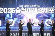 내고향뉴스 임정빈 기자 | 충청광역연합은 10월 27일 청주오스코에서 충청권 경제인 100여 명을 모시고 ‘2025 충청미래경제포럼’을 개최했다. 이번 포럼은 충청광역연합 출범 이후 처음으로 열린 충청권 경제분야 통합포럼으로, 초광역행정체제의 성공적 정착과 지역경제의 통합 발전기반을 모색하기 위해 마련됐다. 행사에는 김영환 충청광역연합장을 비롯해 유인호 충청광역연합의회 부의장, 차태환 충북상공회의소협의회장, 충청권 주요 상공회의소 회장단, 기업인, 전문가 등 100여 명이 참석했다. 식전 국악퓨전 가야금공연과 개회식에 이어 “충청, 대한민국 경제의 중심”이라는 슬로건 아래 충청권의 연대와 협력을 상징하는 공동 퍼포먼스로 포문을 열었다. 이날 주제발표에서는 ▲ 조병설 세종테크노파크 책임연구원이 “중부권 K-CBC(Korea-Central region Bio Cluster) 육성 방향”을 발표하며, 중부권 4개 시도가 바이오 융복합 산업을 공동 성장엔진으로 육성하고, 혁신 생태계를 통한 규모의 경제실현 전략을 제시했다. ▲ 정윤선 산업연구원 연구위원은 “미래모빌리티 산업동향과 충청권 산업육