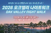 내고향뉴스 김명신 기자 | 한국걷기협회와 아이파크리조트가 공동 주최하는 ‘2026 오크밸리 나이트 워크’가 다음 달 4일 원주에서 개최된다. 오크밸리 나이트워크는 해를 거듭하며 도내 대표 야간 트레킹 행사로 자리매김하고 있다. 올해 행사는 5월 4일 오후 7시, 오크밸리 빌리지센터 광장에서 출발한다. 리조트 숲속 산책로를 따라 싱그러운 숲의 향기와 화려한 조명, 미디어아트가 어우러져 일상에 지친 방문객들에게 힐링의 시간을 선사할 예정이다. 특히 어린이날부터 어버이날까지 이어지는 기간에 개최돼, 5월 밤의 쾌적한 날씨 속에서 가족, 친구, 연인과 함께 여유롭게 걸으며 몸과 마음의 조화를 되찾을 수 있다. 또한 야간 인증 사진을 남기기에도 좋은 이색적인 행사로 기대를 모으고 있다. 코스는 총 5㎞로, 남녀노소 누구나 참여할 수 있도록 구성됐다. 시원하게 펼쳐진 페어웨이와 리조트 전경을 감상할 수 있는 카트 산책로 구간을 시작으로, 울창한 참나무 군락지에서 은은한 숲의 향기를 느낄 수 있는 오크밸리CC의 오크 코스를 지난다. 이어 신비로운 음악과 함께 빛의 향연이 펼쳐지는 ‘소나타 오브 라이트’ 구간과, 세계적인 작