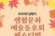 내고향뉴스 정미경 기자 | 남원시가 후원하는 2025 남원시 생활문화예술동호회 페스티벌이 9월 28일에 남원 사랑의 광장에서 개최한다. 이 행사는 (사)남원시 생활문화예술동호회 네트워크에서 주관하는 축제로, 지역 예술인 및 생활 문화예술 동호인 500여 명과 남원 시민이 함께하는 남원의 생활 문화예술 축제이다. 오후 1시부터 오후 6시까지 남원 사랑의 광장 일원에서 진행되는 이번 축제는 18개 동호회의 음악·무용·농악 등 다양한 무대 공연이 펼쳐지고, 나만의 예술적 감각을 담은 생활용품을 제작해 볼 수 있는 전시 및 체험 부스가 마련됐다. 이기영 생활문화예술동호회 네트워크 이사장은 “이번 축제를 통해 남원 시민들이 함께 즐길 수 있는 다양한 프로그램이 마련됐다.”라며, “앞으로의 활동으로 시민 여러분이 즐거운 문화예술 활동에 참여할 수 있도록 노력하겠다.”라고 밝혔다. 최경식 남원시장은 “이번 행사를 통해 생활 문화예술인의 자긍심을 높이고, 시민 여러분이 생활 문화예술을 접할 수 있는 장이 될 것이다.”라며, “시민의 화합과 생활 문화예술 발전의 계기가 될 것이다.”라고 말했다.