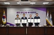 내고향뉴스 임정빈 기자 | 원주시는 27일 오전 11시, 강원특별자치도청 신관 2층 소회의실에서 원강수 시장, 김진태 도지사, 이명심 로로에프엔비㈜ 상무이사, 정동인 ㈜수반에이치앤비 대표이사 등이 참석한 가운데 원주 공장 신설을 위한 투자협약을 체결했다. 이번 협약을 통해 두 기업은 원주 문막반계산업단지와 기업도시에 제조공장을 설립하고, 원주시는 기업의 원활한 투자활동을 위해 행·재정적으로 지원할 방침이다. 로로에프엔비는 원주시 부론면에 소재한 프리미엄 디저트 전문 브랜드로, 자체 브랜드 ‘로로멜로(ROROMALLO)’를 출시하며 ‘프로즌스모어’, ‘아이스브륄레’등 차별화된 100% 수제 프리미엄 디저트를 선보여 소비자와 업계의 큰 관심을 받고 있다. 마켓컬리, GS25, CU, 세븐일레븐 등 다양한 유통채널과의 협업을 확장하고 있으며, 아시아 국가를 대상으로 수출을 확대하는 등 늘어나는 수요에 대응하기 위해 제조공장 신설 투자를 결정했다. 2027년까지 문막반계산업단지(8,214㎡)에 134억 원을 투입해 제조공장을 신설하고, 203명을 신규 고용할 계획이다. ㈜수반에이치앤비는 화장품·건강기능