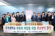 내고향뉴스 정미경 기자 | 완주군이 우석대학교 교양관에서 ‘천 원의 아침밥’ 사업 하반기 첫날 맞이 행사를 개최하고 본격적인 사업 추진에 나섰다. 22일 완주군은 우석대학교 교양관에서 천 원의 아침밥 사업 하반기 첫날 맞이 행사를 가졌다. 이날 행사에는 유희태 완주군수와 박노준 우석대 총장, 김정은 사회적협동조합 양지뜰 대표 등이 참여해 바쁜 학업과 생활로 아침식사를 거르는 대학생들에게 로컬푸드 식재료를 활용한 아침식사를 직접 전달하고, 격려의 메시지를 전달했다. 이번 행사는 하반기 사업의 성공적인 추진을 다짐하고, 학생들의 다양한 의견 청취와 함께 사업의 내실화를 기하기 위해 마련됐다. 학생들에게 제공될 메뉴는 상반기 추진된 만족도 조사를 반영해 지역산 쌀을 활용한 덮밥을 다양화하고, 과일 등 영양가가 높고 건강한 간편식 식단으로 구성한다. 특히, 직매장을 운영 중인 완주로컬푸드 협동조합에서는 판매되지 않은 신선한 농산물을 기부하고자 하는 농가를 적극 발굴 연계해, 사업에 힘을 보탤 계획이다. 완주군은 상반기 동안 진행된 사업을 도 먹거리통합지원센터와 함께 지속적으로 모니