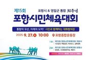 내고향뉴스 채필재 기자 | 포항시는 오는 27일 포항종합운동장에서 ‘제15회 포항시민체육대회’를 개최한다. 격년제로 열리는 포항시민체육대회는 세대와 지역을 아우르는 대표적인 시민 화합 행사로 자리매김해왔다. 올해는 포항시-영일군 통합 30주년을 맞아 더욱 뜻깊은 무대가 마련된다. 이번 대회에는 29개 읍면동 선수단과 일반 시민 등 1만여 명이 참여한다. 특히 통합 30주년을 시민과 함께 기념하기 위해 관중석 중앙에 특설무대를 설치하고 성화 점화식을 진행, 시민 모두가 하나 되는 감동의 순간을 연출할 계획이다. 개회식 직후에는 국민가수 홍진영의 축하공연이 이어져 열정적인 무대로 현장을 뜨겁게 달굴 예정이다. 시민체육대회 하이라이트인 운동회 프로그램은 경쟁 위주의 종목을 줄이고, 줄다리기·윷놀이·줄넘기 등 남녀노소 누구나 즐길 수 있는 생활형 종목 중심으로 구성된다. 참여자 모두가 웃으며 어울리는 참여형 체육 축제로 진행된다. 또한 29개 읍면동 예선을 거쳐 선발된 10개 팀이 무대에 오르는 ‘시민화합한마당’ 공연도 준비돼 있어, 각 읍면동 대표들이 끼와 열정을 뽐내는 무대를 선보인다.