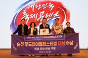 내고향뉴스 김명신 기자 | 순천시는 대표 문화관광축제인 ‘순천 푸드앤아트페스티벌’이 24일 서울 용산구 피스앤파크 컨벤션에서 열린 ‘제14회 대한민국축제콘텐츠대상’ 시상식에서 문화·예술 부문 대상을 수상했다고 밝혔다. 대한민국축제콘텐츠대상은 축제 산업의 글로벌 경쟁력 강화를 위해 (사)한국축제콘텐츠협회가 주관하는 시상식으로, 축제 콘텐츠의 독창성과 완성도 및 지역 기여도 등을 평가해 우수 축제를 선정해왔다. 순천 푸드앤아트페스티벌은 그간의 꾸준한 성과를 바탕으로 문화·예술 콘텐츠를 혁신적으로 강화한 점을 높게 평가받으며 대상의 영예를 안았다. 이번 수상은 거리 곳곳에서 펼쳐진 미술·공연·전시·체험 프로그램을 대폭 확대해 시민과 관광객의 참여를 이끌어낸 점이 주효했다. 특히 중앙로 곳곳에서 펼쳐진 스토리형 마임과 서커스 공연은 관객과의 즉흥적 호흡과 현장 참여를 유도하며, 단순히 ‘보는 행사’에서 ‘함께 만드는 참여형 문화예술행사’로 축제의 지평을 확장시켰다는 평가다. 또한 국립한글박물관과의 협업으로 선보인 ‘사투리 이야기 콘서트’는 전남 방언의 독특한 정서를 지역 고유의 문화자산으로 재조명함과 동시