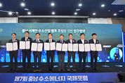 내고향뉴스 이경희 기자 | 대한민국 탄소중립을 선도 중인 충남도가 국내 석탄화력발전소 절반이 밀집한 서해안 일원에 친환경 수소산업 벨트를 구축한다. 수소 생산부터 저장, 활용까지 국내 최대 수소산업 클러스터를 구축, 탄소배출 전국 1위 충남을 글로벌 수소 허브로 탈바꿈시킨다는 목표다. 김태흠 지사는 18일 제7회 수소에너지 국제포럼에서 19개 기관·단체·대학·기업과 업무협약을 맺고, 서해안 수소산업 벨트 구축 본격 추진을 안팎에 선언했다. 서해안 수소산업 벨트는 수소산업 기반 조성을 통한 에너지 전환과 산업 고도화 등을 위한 초대형 프로젝트로, ‘수소경제 선도 국가 도약의 혁신 거점, 충남’을 비전으로 설정했다. 추진 전략은 △수요 대응을 위한 청정수소 생산 확대 △수소산업 육성을 위한 생태계 조성 △친환경 수소도시 구축 △수소 전문기업 및 인력 양성 등으로 잡았다. 2040년까지 목표는 △수소 120만 톤 생산 △수소 혼소·전소 발전 20GW △수소도시 10개소 조성 △수소 전문 기업 200개 육성 △수소차 5만 대 보급 △수소충전소 180개소 340기 설치 등이다. 이