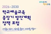 내고향뉴스 채필재 기자 | 서울특별시교육청은 ‘예술로 잇다, 감성을 품다, 미래를 열다’를 주제로 10월 30일, 제2서울창의예술교육센터에서 『2026~2030 학교예술교육 중장기 발전계획 비전 선포식』을 개최한다. 선포식은 ‘AI 아트랩 서울’건립을 통해 미래형 예술교육의 새 장을 여는 서울시교육청의 비전을 공유하는 자리로, 예술교육 분야 교수 및 전문가, 학생, 학부모, 초‧중‧고‧특수 교원 등 200여 명이 참석할 예정이다. 서울시교육청 2026~2030 학교예술교육 중장기 발전계획은 ‘예술이 일상이 되는 학교’를 비전으로 제시하고, △'미래역량 기반 학교예술교육' △'마음을 채우는 서울예술교육' △'지역과 상생하는 예술생태계'의 세 가지 추진 전략을 통해 서울 학교예술교육의 발전 방향을 구체화했다. 이번 계획은 예술이 학생의 마음 성장을 돕는 교육적 힘이 되도록, 음악·미술·연극·영화·뮤지컬 등 다양한 예술교육 경험을 통해 정서적으로 어려움을 겪는 학생도 예술로 마음을 채우고 성장할 수 있도록 지원하는데 중점을 두고 있다. 나아가 모든 학생이 예술을 누리며 일상에서 직접 예술을 경험할 수 있게 하는 것