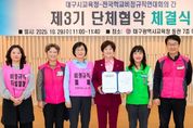 내고향뉴스 채필재 기자 | 대구시교육청은 2025년 10월 29일 오전 11시, 대구학교비정규직연대회의와 ‘제3기 단체협약 체결식’을 개최한다고 밝혔다. 이는 지난 2022년 12월 27일 제3기 단체교섭을 시작한 후, 올해 9월까지 본교섭 16회, 실무교섭 54회를 거쳐 최종 협약에 이른 것이다. 대구시교육청은 단체교섭 기간 중 우선협약을 통해 2024년 2월 19일 산업재해근로자‘생활안정지원금’제도를 우선 시행하고, 폐암 확진 근로자의 근무환경 개선을 위해 본인 희망에 따라 직종전환(조리종사원 → 특수교육실무원)을 기 시행한 바 있다. 아울러 지난 추석부터 당직경비원의 근무여건 개선을 위해 명절(설, 추석) 기간 중 각 3일간의 유급휴일을 선제적으로 부여했다. 이번에 체결하는 단체협약에는 학생 교육활동 및 현장의 행정 지원을 강화하기 위해 ▲교무실무사 직종통합 및 단계적 상시 전환 추진, ▲방학 중 비근무자인 사서 직종(10일→15일) 및 조리 직종(8일→12일)의 방학 중 근무일수 확대를 추진한다. 교육공무직원의 근무여건 개선 및 복지 향상을 위해 ▲정년퇴직준비휴가 신설(3~5