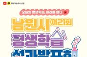 내고향뉴스 정미경 기자 | 남원시은 오는 26일 사랑의 광장에서 ‘오늘의 평생학습, 미래를 열다’를 주제로 제21회 남원시 평생학습 성과발표회를 개최한다. 이번 행사는 한 해 동안 갈고닦은 학습 성과를 시민들과 생생히 공유하고 무대에서 실력을 선보이는 자리로 남원시의 대표적인 평생교육 축제다. 민·관·학이 협력해 이룬 성과를 자랑하고 나누는 뜻깊은 장이 될 전망이다. 행사 당일에는 성인문해 우수작 시낭송을 시작으로, 지난 1년간 갈고닦은 실력을 선보이는 14개 평생학습 공연팀의 다채로운 무대가 펼쳐진다. 또, 30여 개 체험부스와 50여 점의 작품 전시, 가족과 함께 즐길 수 있는 포토존이 마련돼 시민들에게 다채로운 즐거움을 선사한다. 체험부스에서는 ▲프랑스자수 ▲캘리그라피 ▲세라믹아트 ▲사진인화 ▲키링만들기 ▲먹거리 체험 ▲인생네컷 ▲재봉틀 체험 ▲포크아트 등 남녀노소 누구나 참여할 수 있는 프로그램이 준비됐다. 특히, 나만의 개성을 담아 가방을 직접 디자인하고 꾸미는 체험도 진행된다. 또한 행사 현장에서는 시민들이 더욱 즐겁게 참여할 수 있도록 ▲사전 홍보