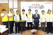 내고향뉴스 채필재 기자 | 대전시의회 조원휘 의장은 1일‘열두별봉사단’회원 6명을 초청해 표창장 수여 및 환담을 진행했다. ‘열두별봉사단’은 의사, 변호사, 세무사 등 대전 청년사업가들로 이루어져 대전시 5개구 청소년 여성물품 2만개 후원 및 0시축제 환경정화 봉사, 매월 거리 청소를 실시하는 등 지역사회 곳곳에서 따뜻한 나눔을 실천하고 있는 봉사단체다. 조원휘 의장은 “열두별봉사단 여러분의 따뜻한 나눔과 헌신이 지역사회를 밝고 건강하게 만드는 힘이 된다”라며 격려했고 “대전시의회도 뜻깊은 활동에 깊은 감사와 존경을 표하고 앞으로도 관심과 지원을 아끼지 않겠다”라고 말했다.