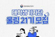 내고향뉴스 정미경 기자 | 대한민국의 문화예술·콘텐츠·체육·관광 소식을 취재하고 널리 알릴 대학생기자단 울림 21기를 모집합니다. 모집요강 · 모집대상: 문화예술, 콘텐츠, 체육, 관광 분야를 사랑하는 대학생(재학생, 휴학생 모두 가능) · 모집분야: 영상기자 00명/글·사진기자 00명 · 선발방법: (1차) 서류심사 → (2차) 면접심사 · 제출서류: 지원서, 자기소개서, 포트폴리오(총 3매) 지원방법 ① 문화체육관광부 블로그(도란도란 문화놀이터)에서 '울림 21기' 검색 ② '문화체육관광부 대학생기자단 울림 21기 모집' 공고문에 첨부된 서류 내려받기 ③ 제출 서류 작성 후 양식에 맞춰 메일로 제출 (mcstkorea@naver.com) *양식(3매) 내 작성 ※ 메일제목: [울림 21기 지원] 본인 이름 (예시) [울림 21기 지원] 홍길동 모집일정 · 모집기간: 10월 27일(월)~11월 10일(월) 오후 6시 · 선발일정 - 1차 서류심사 발표: 11월 26일(수) - 2차 면접심사: 12월 5일(금) / 서울 *예정 · 합격자발표: 12월 17일(수) *문화체육관광부 공식 블로그 공지 예