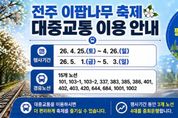 내고향뉴스 김명신 기자 | 주말을 맞아 이팝나무가 만개한 전주시 팔복동 철길을 찾는 시민들을 위해 전주시내버스가 더 자주 다닌다. 전주시는 오는 25일~26일, 5월 1일~3일 등 총 5일간 팔복예술공장 일대에서 펼쳐지는 ‘2026 전주 이팝나무 축제’에 맞춰 방문객 집중 시기에 시내버스 운행을 조정하는 등 교통수요 중심의 운영 대책을 추진한다고 23일 밝혔다. 시는 올해 4월 벚꽃 개화 시기에 맞춰 만경강변 일대에 특별노선을 운영하는 등 계절별 관광수요에 대응한 교통 지원을 추진했으며, 이러한 운영 경험을 바탕으로 이번 이팝나무 축제 기간에도 교통 운영을 이어갈 계획이다. 이번 축제는 개화 시기에 맞춰 연속 운영이 아닌 주말·공휴일에 집중 운영 방식으로 진행되는 것이 특징으로, 시는 방문객이 몰리는 시기 주말·공휴일 버스 운행을 조정해 5개 노선에 버스 7대를 추가 하는 등 교통 지원을 강화키로 했다. 축제장을 경유하는 전주시내버스 노선은 △101번 △103-1번 △103-2번 △337번 △383번 △385번 △401번 △402번 △403번 △420번 △644번 △684번 △1001번 △1002