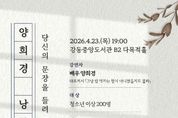 내고향뉴스 김명신 기자 | 서울 강동문화재단은 4월 도서관 주간(4월 12일~4월 18일)을 맞아 지역 주민들이 책과 문화를 보다 가까이에서 접할 수 있도록 강동중앙도서관에서 다채로운 독서문화 프로그램을 선보인다고 밝혔다. 이번 프로그램은 도서관이 단순히 머무는 공간을 넘어 도서관 이용자가 직접 프로그램의 주체로 참여하고 창작과 소통을 경험하는 공간이 될 수 있도록 기획됐다. 대표 프로그램으로는 배우 양희경과 함께하는 낭독회 '당신의 문장을 들려드립니다'가 준비되어 있다. 세계 책의 날을 맞아 4월 23일 오후 7시에 시작될 이 프로그램은 사전 공모를 통해 접수된 구민들의 사연과 문장을 라디오 형식으로 낭독하고 이야기를 나누는 방식으로 진행된다. 배우 양희경의 마음을 어루만져 주는 목소리가 참여자들에게 깊은 공감과 따뜻한 위로를 전하며 문학을 보다 친근하게 만날 수 있는 특별한 시간을 선사할 예정이다. 도서관 주간 전후로도 다양한 프로그램이 이어진다. 앞서 4월 1일에는 찾아가는 미니북 전시 '작지만 커다란 세계'가 시작됐고, 4월 5일에는 영화 '바람이 전하는 말' 관객과의 대화, 4월 11일에는 지역 작가 김원훈의 북토