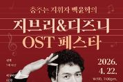 내고향뉴스 김명신 기자 | 동작구가 오는 22일 오후 7시, 원불교 소태산홀(현충로 75)에서 ‘춤추는 지휘자 백윤학의 지브리&디즈니 OST 페스타’를 개최한다고 밝혔다. 동작문화재단이 주최·주관하는 이번 행사는 4월 ‘문화가 있는 날’을 맞아, 어린이부터 장년층까지 전 세대가 함께 공감하고 즐길 수 있도록 기획됐다. 백윤학은 영남대학교 음악대학 교수이자 ‘서울 페스타 필하모닉 오케스트라’를 이끄는 지휘자로, 음악을 온몸으로 표현하는 독특한 지휘 스타일로 주목받고 있다. 이번 공연에서는 ‘서울 페스타 필하모닉 오케스트라’, 보컬리스트 ‘이희주’와 함께 전 세계적으로 사랑받는 애니메이션 명곡들을 오케스트라의 웅장한 사운드로 재해석해 선보일 예정이다. 관객들은 무대를 통해 ▲마녀배달부 키키 ▲하울의 움직이는 성 ▲벼랑 위의 포뇨 ▲천공의 성 라퓨타 ▲이웃집 토토로 ▲센과 치히로의 행방불명 등 지브리 대표 작품의 주제곡을 아름다운 선율로 감상할 수 있다. 또한 ▲라이온킹 ▲인어공주 ▲인크레더블 ▲주토피아 ▲모아나 ▲알라딘 등 세대를 아우르는 디즈니 명작 OST도 섬세한 연주와 청아한 음색으로