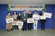 내고향뉴스 라정운 기자 | 김천시는 지난 9월 22일 시청 2층 브리핑실에서 2025년 '맛·깔·친 우수음식점' 신규 및 재지정 업소 지정서 수여식을 개최했다. 2019년도부터 시행된 맛·깔·친(맛있고 깔끔하고 친절한 업소) 우수음식점 지정은 김천시를 대표하는 음식점을 발굴․육성하는 사업으로, 김천시 조례에 의해 임명된 우수음식점 발굴·육성위원회의 현장 심사를 통해 맛, 위생, 친절도 등을 종합적으로 평가하여 대상 업소를 선정한다. 올해 신규 지정된 업소는 다양한 약재를 우려낸 육수를 사용한 해장국 전문점인 '석불해장전문점', 활력 증진에 좋은 장어구이 맛집 '착한숯불장어', 미국 현지에 온 듯한 개성 있는 인테리어에 수제 햄버거를 맛볼 수 있는 '미트미트', 특제 모링가 소스로 만든 제육볶음이 일품인 대덕면 소재의 '중원깜돈식당'까지 총 4개소이다. 지정된 지 2년이 경과된 업소에 대해서도 평가를 통해 재지정 여부를 결정하며, 올해는 '우리반상시월', '안동황소식육식당' 총 2개 업소가 재지정됐다. 신규 및 재지정 업소에 대해서는 지정서 및 현판 수여, 시설개선보수비 지원, 시청 홈페이지‧맛집 책