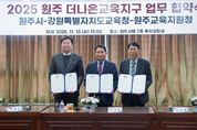 내고향뉴스 채필재 기자 | 강원특별자치도교육청은 원주시, 원주교육지원청과 11월 18일 원주시청에서 ‘원주 더나은교육지구 연장지정 업무협약’을 체결했다. 이번 협약은 2018년 제1기 4년, 2022년 제2기 4년 운영에 이어 2026년부터 4년간 제3기 더나은교육지구 사업을 새롭게 추진하기 위해 마련됐다. 세 기관은 ‘배움과 성장, 문화예술로 동행하는 원주’라는 비전 아래 학교와 지역이 함께 성장하는 지속가능한 교육생태계 조성을 위해 매년 4억 원(교육청 2억 원, 군 2억 원)을 공동 지원한다. 원주 더나은교육지구는 학생의 전인적 성장을 지원하는 지역 중심 교육협력 사업으로, 학교·지자체·지역사회가 협력하는 ‘배움과 성장의 지역교육공동체’를 구축하고 있다. 지구중점 공동사업으로 △‘원주 한바퀴’ 원주 탐방 프로젝트 △‘원주 한바탕’ 원주 체험 프로젝트를 운영해 학생들이 지역의 역사·문화·자연을 탐방하며 원주 시민으로서의 정체성과 자긍심을 기를 수 있도록 돕는다. ‘예술 피움’ 사업은 △‘꿈키움’ 찾아가는 문화예술 소공연 △‘꿈그림’ 그림책·영상 창작 프로젝트 △‘꿈도약’ 리더십 스포츠 프로그램