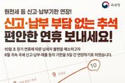 내고향뉴스 고광만 기자 | 원천세 등 신고·납부기한 연장! 신고·납부 부담 없는 추석 편안한 연휴 보내세요! 10월 초 장기 연휴에 따른 납세자 불편을 해소하고자 9월 귀속 국세 신고·납부·제출 등의 기한을 5일 간 연장하기로 하였습니다. ■ 연장 대상 업무 ① 원천세 신고·납부 ②️ 증권거래세 신고·납부 ③ 인지세 납부 ④ 연금수령 개시 및 해지명세서 제출 ⑤ 취업 후 상환 학자금 대출(ICL) 원천공세 신고·납부 업무