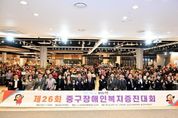 내고향뉴스 김익성 기자 | 울산지체장애인협회 중구지회가 11월 20일 오전 10시 30분 울산시티컨벤션 안다미로홀에서 제26회 장애인복지증진대회를 개최했다. 이번 행사는 장애에 대한 인식을 개선하고 장애인과 비장애인 사이의 소통을 증진하기 위해 마련됐다. 이날 행사에는 김영길 중구청장과 박경흠 중구의회 의장, 이길우 울산시지체장애인협회장, 정진수 울산시장애인총연합회장, 울산지체장애인 중구지회 관계자, 장애인 및 가족, 자원봉사자 등 350여 명이 함께했다. 이번 행사는 울산중구자원봉사센터 봉사단의 우쿨렐레와 바이올린 연주, 숟가락 난타 공연으로 막을 열었다. 1부 기념식은 △장애인 복지 증진 유공자 표창 및 감사패 수여 △개회사 △격려사 △축사 △기념촬영 순으로 진행됐다. 2부 문화 행사 순서에서는 초대 가수 김송, 배채연의 축하공연과 참가자 장기자랑 등이 펼쳐졌다. 김영길 중구청장은 “장애인 권익 신장과 복지 증진을 위해 힘써주신 모든 분들에게 감사드린다”며 “앞으로도 장애인과 비장애인이 서로 존중하며 더불어 사는 행복한 사회를 만들기 위해 노력하겠다”고 밝혔다.