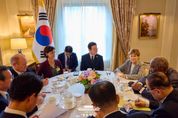 내고향뉴스 정미경 기자 | 유엔총회 참석을 계기로 방미 중인 이재명 대통령이 22일(현지시간) 첫 번째 일정으로 세계경제포럼(WEF) 의장인 블랙록의 래리 핑크 회장, GIP의 아데바요 오군레시 회장, 김용 전 세계은행 총재와 만났다. 이번 만남에선 인공지능과 에너지 전환, 인구 변화라는 인류의 세 가지 대전환 과제를 중심으로 논의가 이뤄졌으며, 동시에 한국과 글로벌 투자사 간 전략적 협력을 위한 공감대를 확인했다. 래리 핑크 회장은 AI와 탈탄소 전환은 반드시 함께 진행되는 것이 중요하고, 이는 전 세계가 함께 가야 할 문제라고 강조하면서 한국이 "아시아의 AI 수도(AI Capital in Asia)"가 될 수 있도록 글로벌 자본을 연계하여 적극 협력하겠다는 의지를 밝혔다. 이재명 대통령은 한국의 아시아태평양 AI 수도 실현을 위해 협력할 수 있게 되어 환영하며, 긴밀하고 지속적인 논의를 통해 이번 협력 관계를 실질적인 협력 성과로 이어지게끔 하자고 강조했다. 또한 래리 핑크 회장을 직접 한국에 초대하기도 했다. 래리 핑크 회장 일행은 이재명 대통령의 리더십으로 취임 이후에 대한민국 증시가