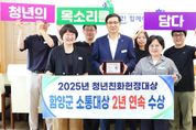 내고향뉴스 고광만 기자 | 함양군은 지난 13일 서울 여의도 국회의원회관 대회의실에서 열린 ‘2025 제9회 대한민국 청년의 날 기념식’에서‘청년친화헌정대상 우수 기초자치단체부문 소통대상’을 수상하며, 2년 연속 수상의 영예를 안았다. 올해 8회에 이르고 있는 ‘청년친화헌정대상’은 국회가 후원하고 (사)청년과미래가 주관하여 정책, 입법, 소통 분야의 청년 친화도를 평가하는 청년친화지수를 기준으로 심사하며, 청년 친화적 환경조성에 기여한 기관들의 업적과 공로를 표창하기 위해 마련됐다. 함양군은 청년정책네트워크 운영, 청년의 날 행사 및 청춘마켓, 청년 주거‧창업 지원사업 등 청년이 체감할 수 있는 다양한 정책을 지속 추진하며 청년들과의 소통과 협력을 강화해 온 점에서 높은 평가를 받았다. 특히 함양군은 작년부터 청년정책네트워크와 함께 청년들이 직접 기획하는 청년의 날 행사를 진행하고 있으며, 다가오는 20일 상림공원(프린지무대)에서 개최되는 ‘2025년 함양군 청년의 날 행사’에서는 군수와의 소통시간 등 청년들과 가까이서 소통하는 시간도 가질 예정이다. 진병영 함양군수는 “이번 수상은 군과 청년이 함