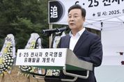 내고향뉴스 채필재 기자 | 김성제 의왕시장이 9월 16일 모락산 유격장에서 개최된 ‘6.25 전사자 유해발굴 개토식’에 참석했다. 이 자리에서 김 시장은 추념사를 통해 “모락산에 잠든 호국영령들의 명복을 빌며, 6.25 전사자들의 고귀한 희생과 헌신을 기려 나가겠다”고 말했다. 한편, 6.25 전사자의 넋을 기리고 유해를 가족의 품으로 모시기 위해 추진되는 이번 유해 발굴 사업은 내손동 산151-1번지 일대(모락산 200고지)에서 실시되며, 육군 제51보병사단과 국방부 유해발굴단 주도로 9월 22일부터 10월 24일까지 5주간 진행될 예정이다.