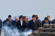 내고향뉴스 김익성 기자 | 이재명 대통령과 김혜경 여사는29일 오전, 제주 4·3 평화공원을 찾아 영령들께 참배하고 유족들과 함께하는 시간을 가졌다. 이번 방문은 국가기념일인 ‘제주 4·3 희생자 추념일’을 앞두고 이루어진 것으로, 이 대통령 내외는 헌화와 분향을 통해 희생자들의 넋을 기렸다. 이어 이 대통령 내외는 희생자 15,126위의 위패가 모셔진 ‘위패봉안실’과 4·3 당시 행방불명되어 시신조차 찾지 못한 희생자들의 표석이 설치된 ‘행방불명인 표석’을 찾아 희생자들을 추모했다. 이 대통령은 위패봉안실에서 나와 방명록에 ‘제주 4·3을 기억하며 국가폭력의 재발을 막기 위해, 민형사 시효제도를 폐기하겠습니다.“라고 남겼다. 이 대통령이 방명록을 작성하는 모습을 지켜보던 임문철 제주4·3평화재단 이사장을 비롯한 관계자들은 문구를 보고 박수로 호응했다. 참배 이후 이 대통령 내외는 제주 4·3 희생자 유족들과 오찬을 함께하며 아픔을 나누고 위로하는 시간을 가졌다. 오찬 간담회에는 윤호중 행정안전부 장관과 오영훈 제주도지사, 김한규·문대림·위성곤 국회의원을 비롯해