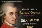 내고향뉴스 김명신 기자 | 서울 용산구가 오는 16일 오후 7시 30분, 용산아트홀 대극장 미르(녹사평대로 150, 지하 2층)에서 클래식 공연 ‘에센셜(Essential) 모차르트’를 개최한다. 구민의 문화예술 향유 기회를 확대하고 지역 문화의 활력을 높이기 위해 마련한 자리다. 이번 공연은 서울문화재단 공연장 상주단체 육성지원 사업의 일환으로, 용산구와 용산문화재단(이사장 임형주), 트리니티이앤엠이 공동 주최‧주관한다. 무대는 2026년 모차르트 탄생 270주년을 기념해 그의 대표 작품들로 꾸렸다. 연주 프로그램에는 ▲작은별 변주곡 ▲교향곡 제41번 ‘주피터’ ▲오페라 ‘마술피리’ 중 밤의 여왕 아리아 ▲바이올린 협주곡 제5번 등이 포함됐다. 친숙한 선율과 화려한 기교, 웅장한 관현악(오케스트라) 음향이 어우러져 모차르트 음악의 폭넓은 매력을 전할 예정이다. 연주는 지휘자 정치용이 이끄는 ‘트리니티필하모닉오케스트라’가 선보인다. ▲바이올리니스트 강유경 ▲소프라노 이미영 ▲플루티스트 오아라가 협연자로 함께한다. 780여 석 규모 전 좌석 무료로 열리며 별도의 사전 신청 없이 선착순 입장으로 운영한